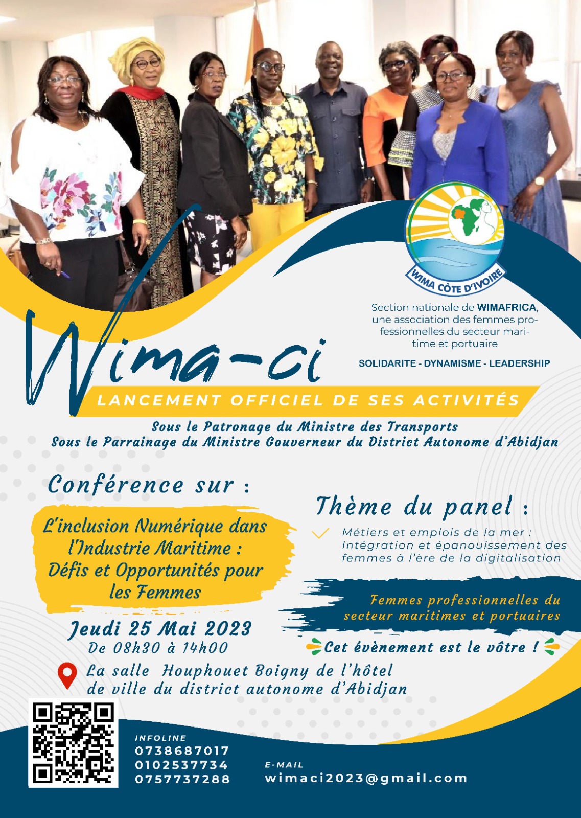 l'association apolitique Women In Maritime (WIMA -CI) est la branche nationale de WIMAFRICA. Une organisation à but non lucratif conçue pour oeuvrer à l'égalité des sexes, à l'autonomisation des filles et des femmes dans le secteur maritime ainsi que pour établir une coopération de développement de l'entrepreneuriat des femmes africaines dans le secteur maritime. WIMAFRICA a une représentation nationale dans 25 Etats d'Afrique. Sa création s'inscrit dans le cadre de la mise en œuvre de l'agenda 2063 de l'Union en Afrique. WIMA-CI est composée de femmes professionnelles, dirigeantes, et entrepreneures dans le secteur maritime exerçant tant dans le secteur formel qu'informel. Elle s'engage dans l'exécution des points 5 et 14 des objectifs de Développement Durable (ODD) pour contribuer au développement de l'économie bleue en Côte d'Ivoire.